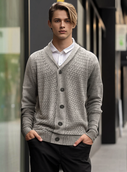 Introducing our Shawl Collar Acrylic Textured Sweater, a must-have for those seeking both style and comfort. Crafted with care, this sweater features a shawl collar that adds a touch of sophistication to your look. The textured design creates visual interest, adding depth and dimension to the garment. Made from high-quality acrylic, it offers a soft and cozy feel, perfect for chilly days. The versatility of this sweater allows for effortless styling, whether you're going for a casual or more polished ensemble. Pair it with jeans or dress pants for a versatile and fashionable outfit. Elevate your wardrobe with our Shawl Collar Acrylic Textured Sweater, combining style, comfort, and versatility in one exceptional garment.